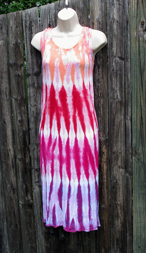 Rayon is a dream to dye because the colors are so vibrant - just look at this rainbow! Tank dress ties in the back to adjust the fit.