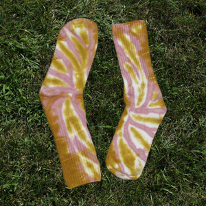 Bamboo socks are so soft you won't want to ever take them off! These have swirls of gold and pink. 100% bamboo rayon fiber.