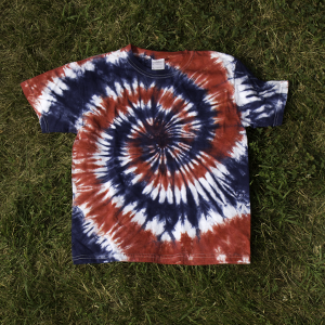 Perfect for Memorial Day, 4th of July, or any time you're feeling patriotic - a spiral of flag blue and red. Choose a crew neck (slightly lower than unisex) or a V-neck. 100% cotton jersey.