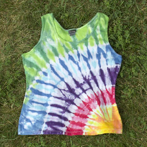 A beautiful rainbow stretches across this 100% cotton tie-dye tank top. Choose either Ribbed for a close fit or Jersey for a looser, longer style.