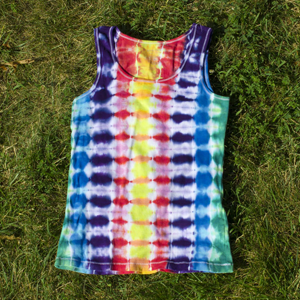 Enjoy summer in a cool 100% cotton tank top, tie-dyed in a diamond pattern of rainbow colors. Choose either Ribbed for a close fit or Jersey for a looser, longer style.