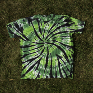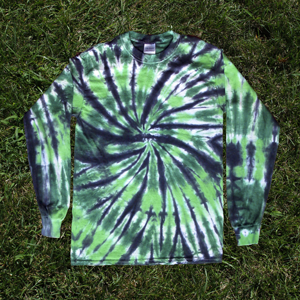 Some of us like to wear tie-dye year-round. Check out this long-sleeved Tee in a striking black and green spiral. 100% cotton jersey.