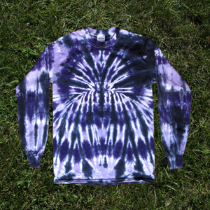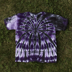 Something different - a tie-dye tee with a black spider pattern against a purple background (any Ravens fans out there?). 100% cotton jersey Tee.