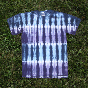 A tie-dye tee doesn't have to mean crazy colors and patterns - these blue and purple stripes are almost mellow. 100% cotton jersey.