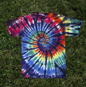 This tie-dye tee reminds me of stained glass - black streaks accenting a rainbow spiral. 100% cotton jersey.
