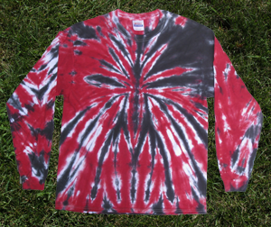 When you love tie-dye but it's too cold for a regular tee, wear a long-sleeved tee! 100% cotton jersey with ribbed cuffs. This one is tie-dyed in a vivid rainbow spiral.