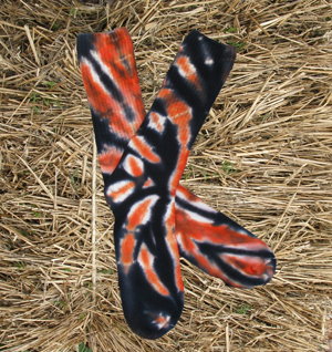 These socks have stripes in lighter shades of the rainbow. 100% bamboo rayon fiber, very soft and stretchy.