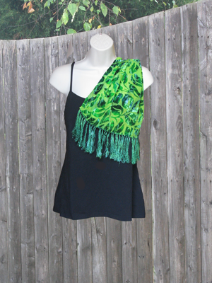 Nothing feels more luxurious than velvet, unless its velvet and silk. This beautiful scarf is hand-dyed with swirls of green that accent the velvet leaves pattern. Silk fringe completes the look.