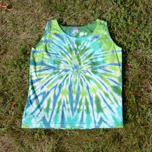 Enjoy summer in a cool 100% cotton tie-dye tank top. Tie-dyed in a diamond pattern of cool blues and greens. Choose either Ribbed for a close fit or Jersey for a looser, longer style.